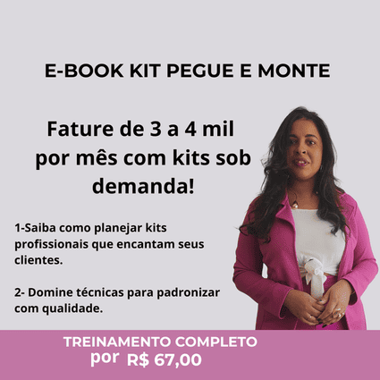 “Eu tinha medo de não conseguir entregar algo profissional. Segui o passo a passo de montagem e embalagem do ebook e minhas clientes ficaram encantadas. Hoje consigo ter uma renda extra só com os kits!”